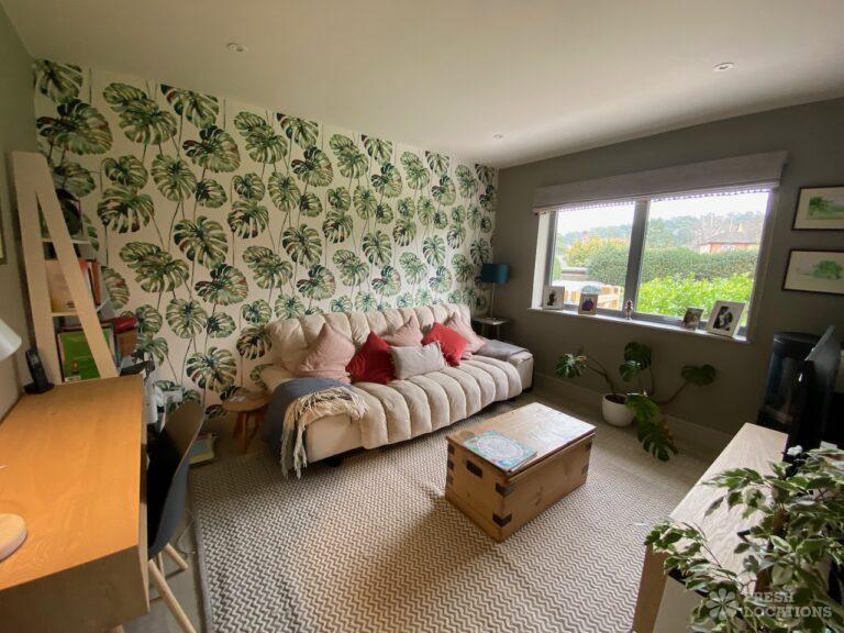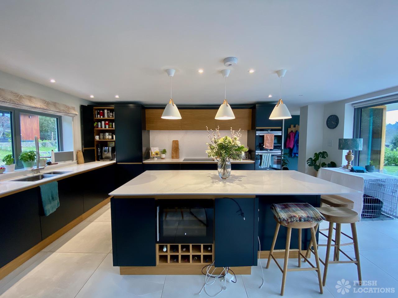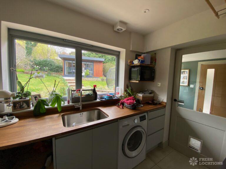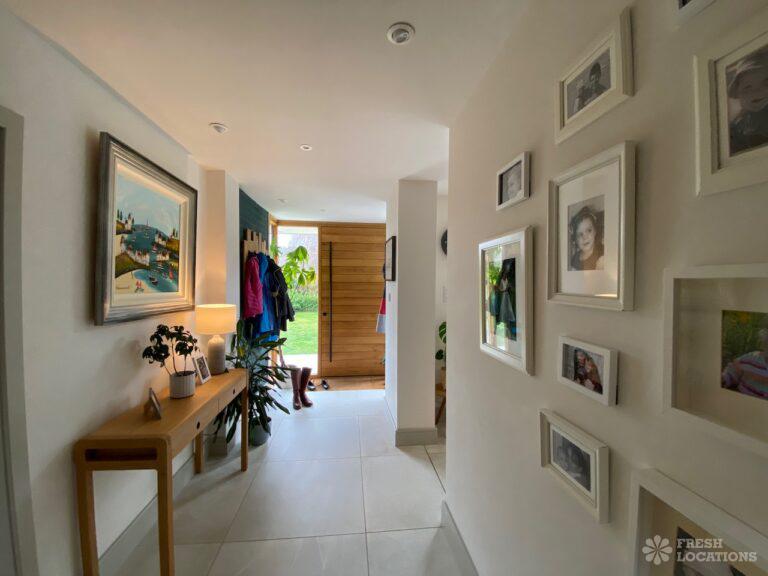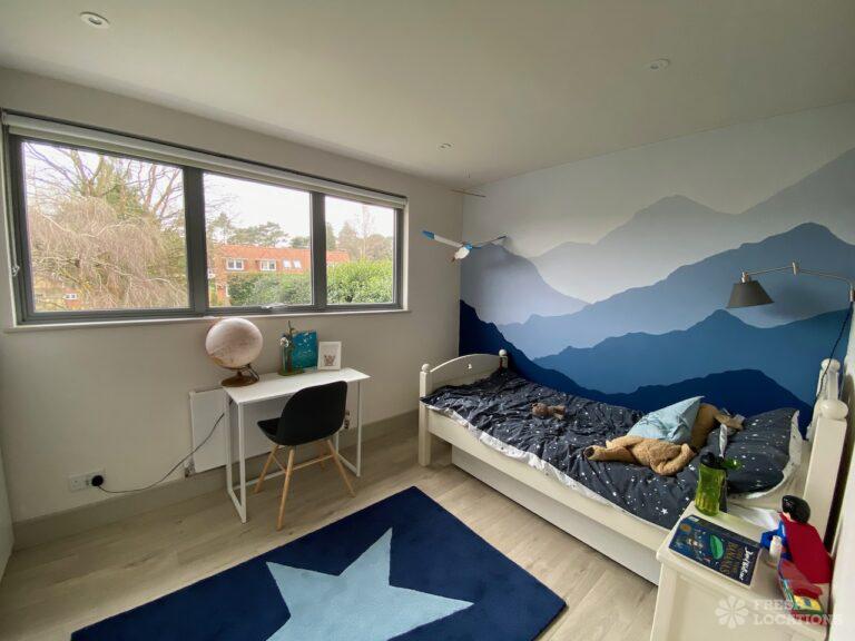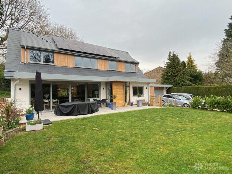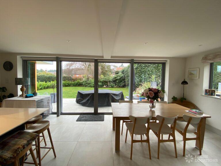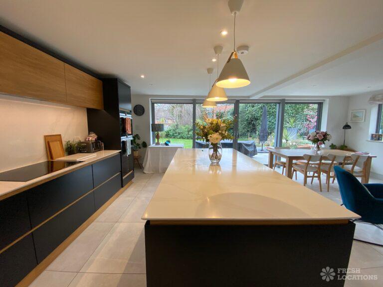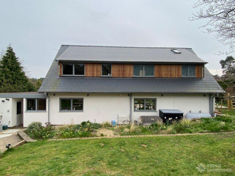 Garden, Driveway, Front Garden, Island Kitchen, Large Garden, Large Kitchen, Open Plan, Staircase, Summer House, Tiled Floor, Wood FloorsModern filming location in Surrey. Open plan kitchen/dining/living area with a large island kitchen. Master bedroom and 2 teenager’s bedrooms. Large garden with a summer house.