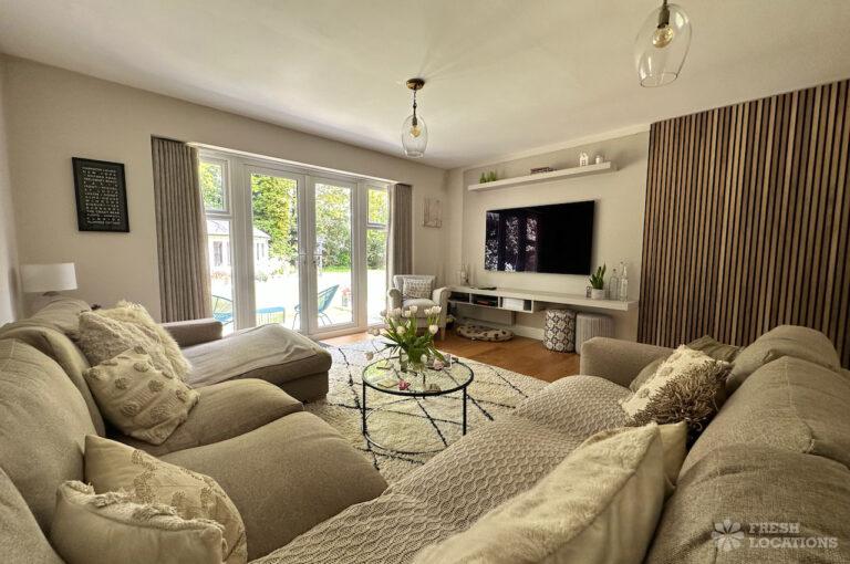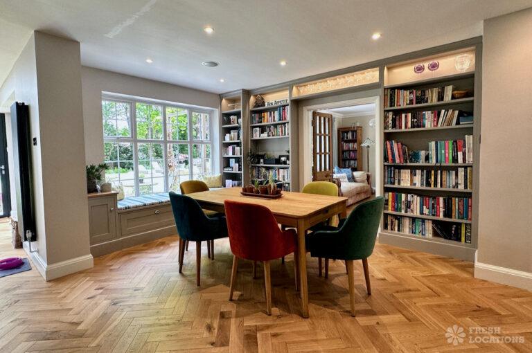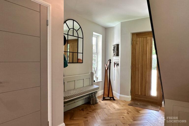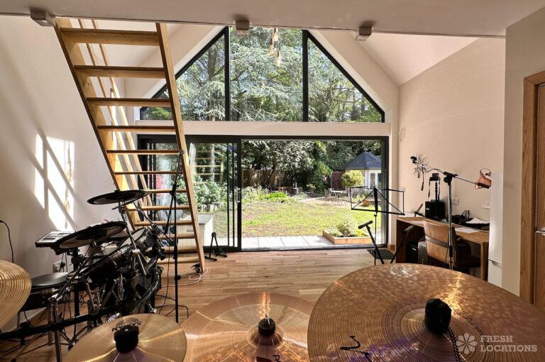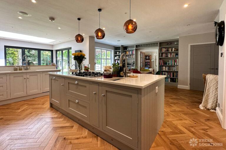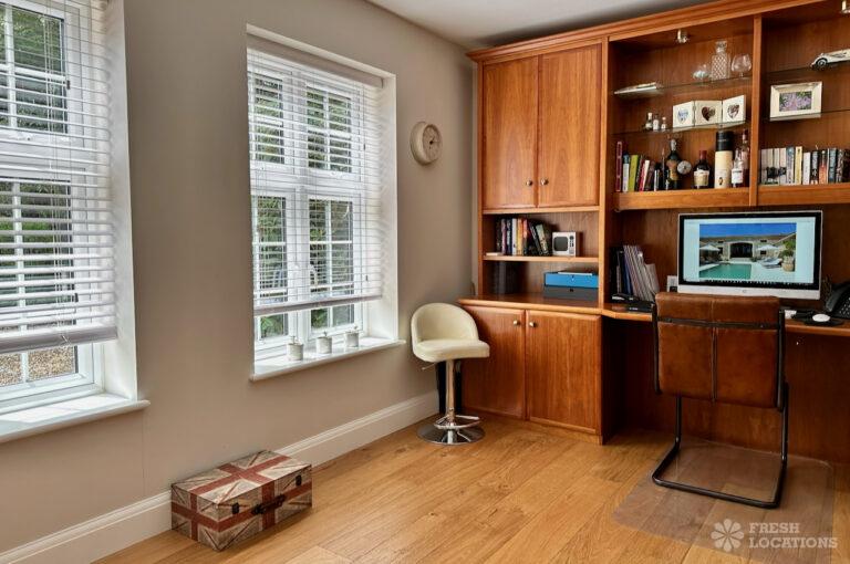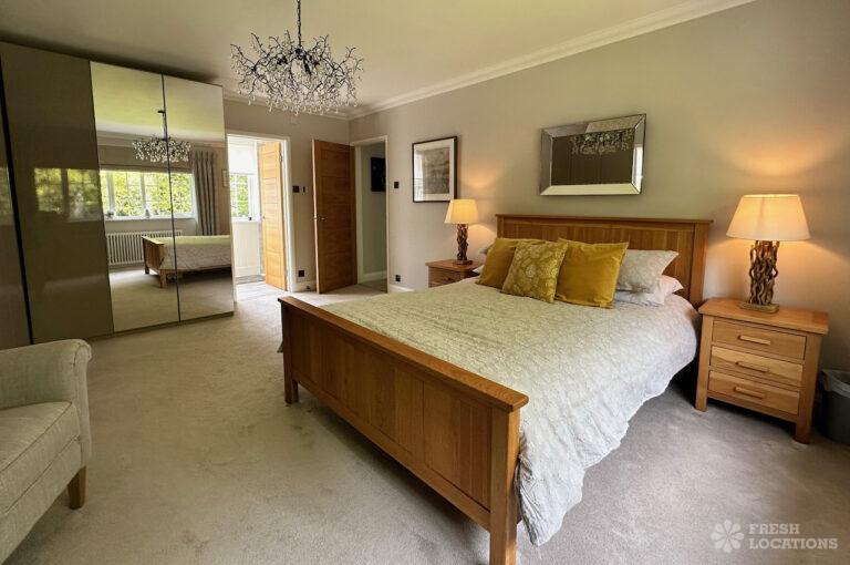 Balcony, Driveway, Ensuite, Fireplace, Garden, Gas Hob, Home Gym, Island Cooker, Island Kitchen, Large Bedroom, Large Driveway, Large Garden, Multiple Bedrooms, Multiple Living Rooms, Open Staircase, Parquet Floor, Skylights, Staircase, Summer House, Tiled Floor, Walk In Shower, Walk In Wardrobe, Wood Floors, Wood PanelledLarge detached family house in Berkshire. This 6 bed shoot location consists of a central open plan kitchen, a dining area, two lounges, two studies and a utility room. The large garden has a patio, several seating areas and an outdoor kitchen with a bar. There is a separate music studio and a summerhouse which is used as a gym.