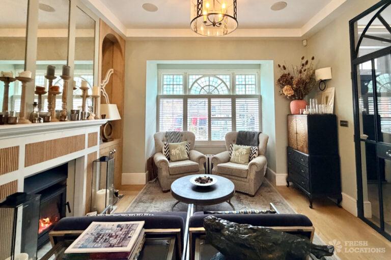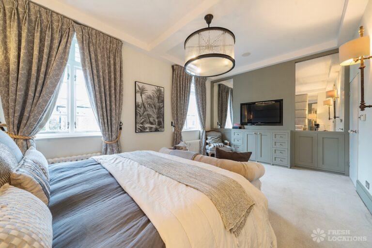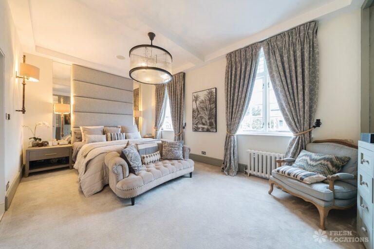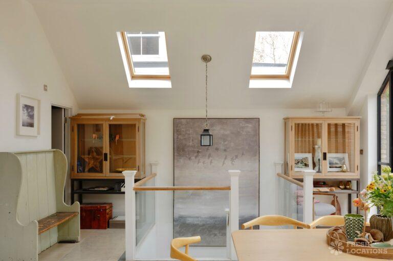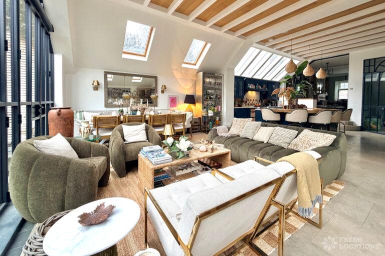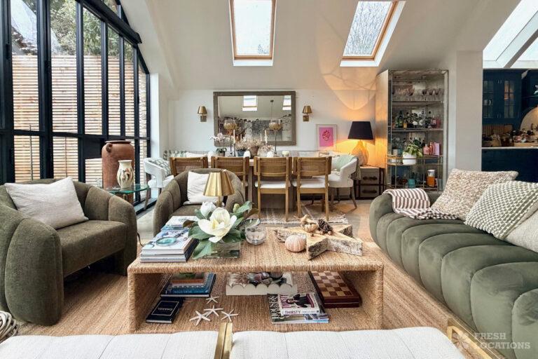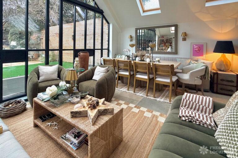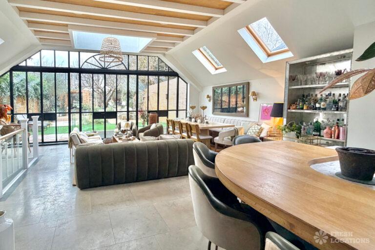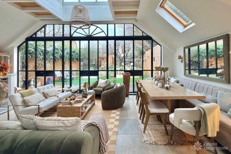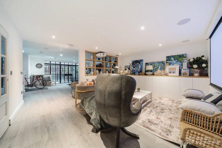 Wood Floors, Decked Terrace, Driveway, Fireplace, Garden, Gas Hob, Home Gym, Island Kitchen, Large Bathroom, Large Bedroom, Large Kitchen, Light Wood Floor, Marble Floor, Open Plan, Panelling, Skylights, Staircase, Tiled FloorPeriod family house with a contemporary feel throughout. Spacious and colourful kitchen with large island and crittal style windows overlooking the garden. Good sized bedrooms including children’s. London Borough of Hamersmith and Fulham.