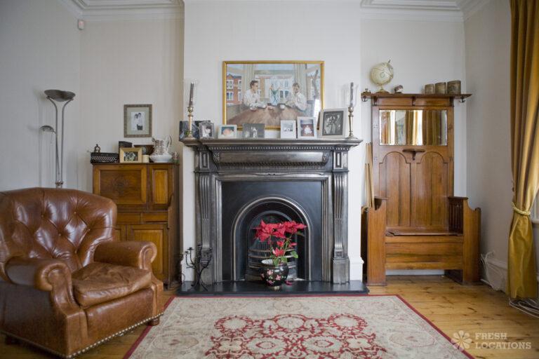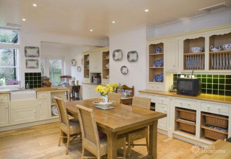 Great family home shoot location in South West London. Large, ordinary kitchen diner with wooden worktops and light kitchen units. Multiple, lived in living rooms with fireplaces. London Borough of Lambeth.