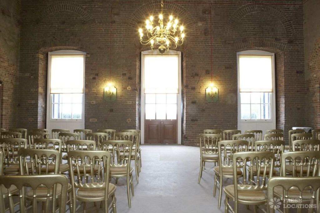 A grand town hall with period features including courtroom, a stage, ballroom, cornicing and panelling. London Borough of Waltham Forest.