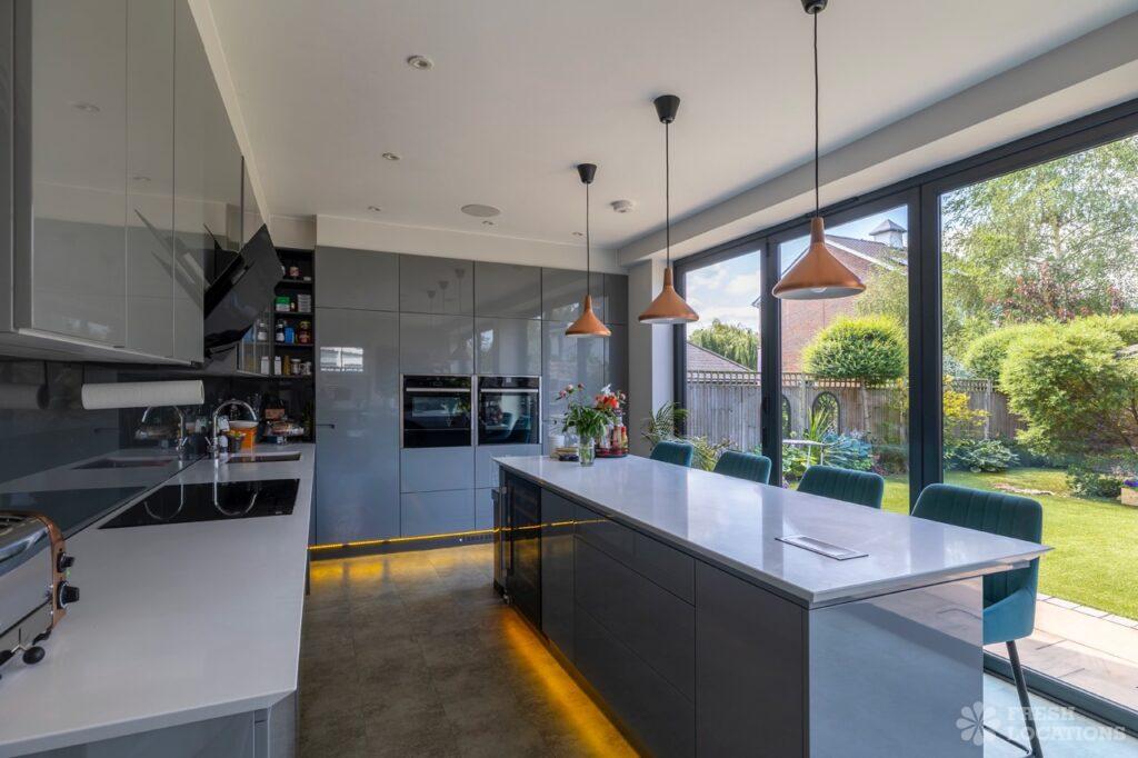 A contemporary eco home shoot location set in the Surrey Hills just outside the M25. blending modern design with sustainable living. The property features an …