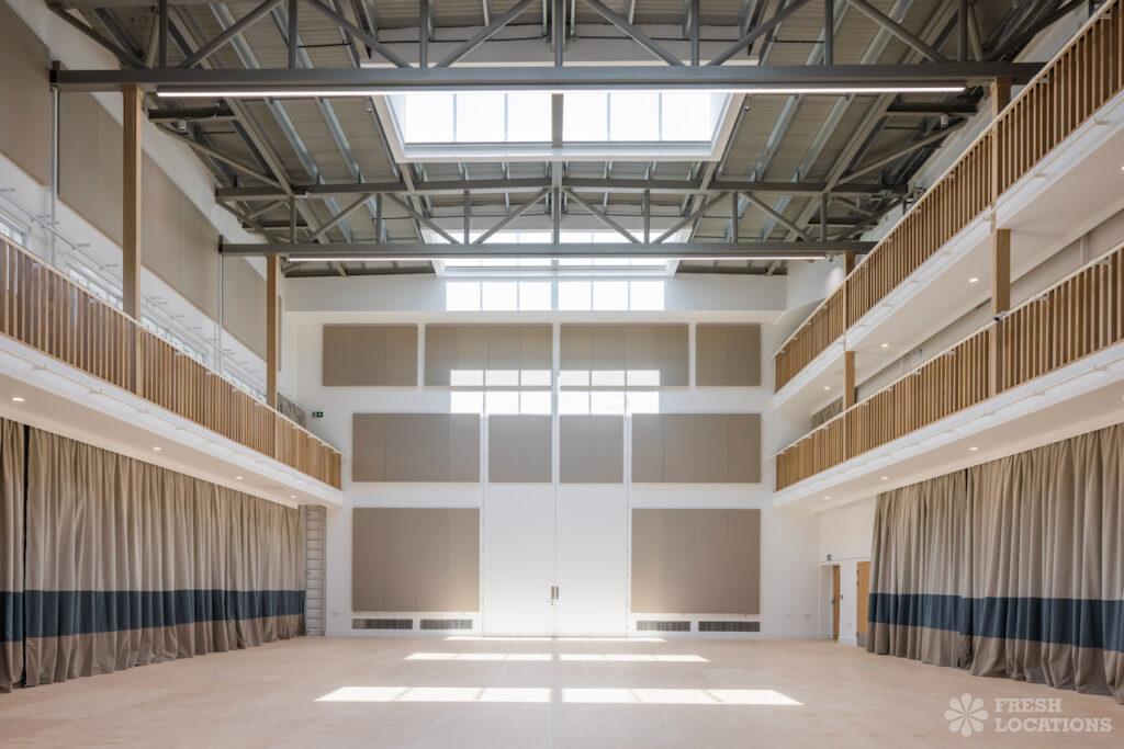 A grand town hall with period features including courtroom, a stage, ballroom, cornicing and panelling. London Borough of Waltham Forest.