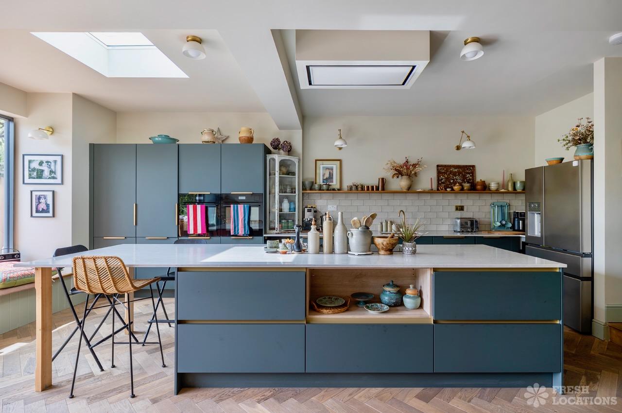 Colourful semi-detached house in East London. This shoot location offers modern features with a quirky style. Rooms include a large kitchen/dining area with an island …