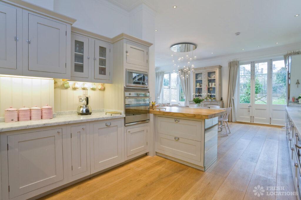 A large family home shoot location in Ealing, West London. Features include a large kitchen with island cooker, polished concrete floor and exposed brick. London …