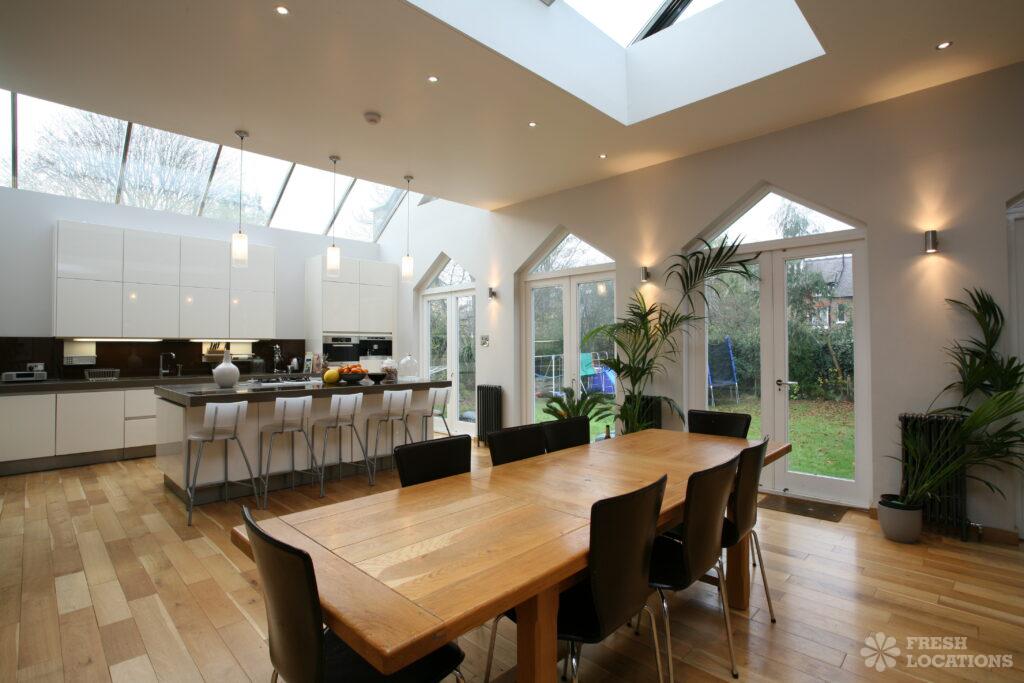 Detached family house shoot location in Surrey. This five bedroom property has a stylish kitchen diner with great natural light from the huge skylights. There …