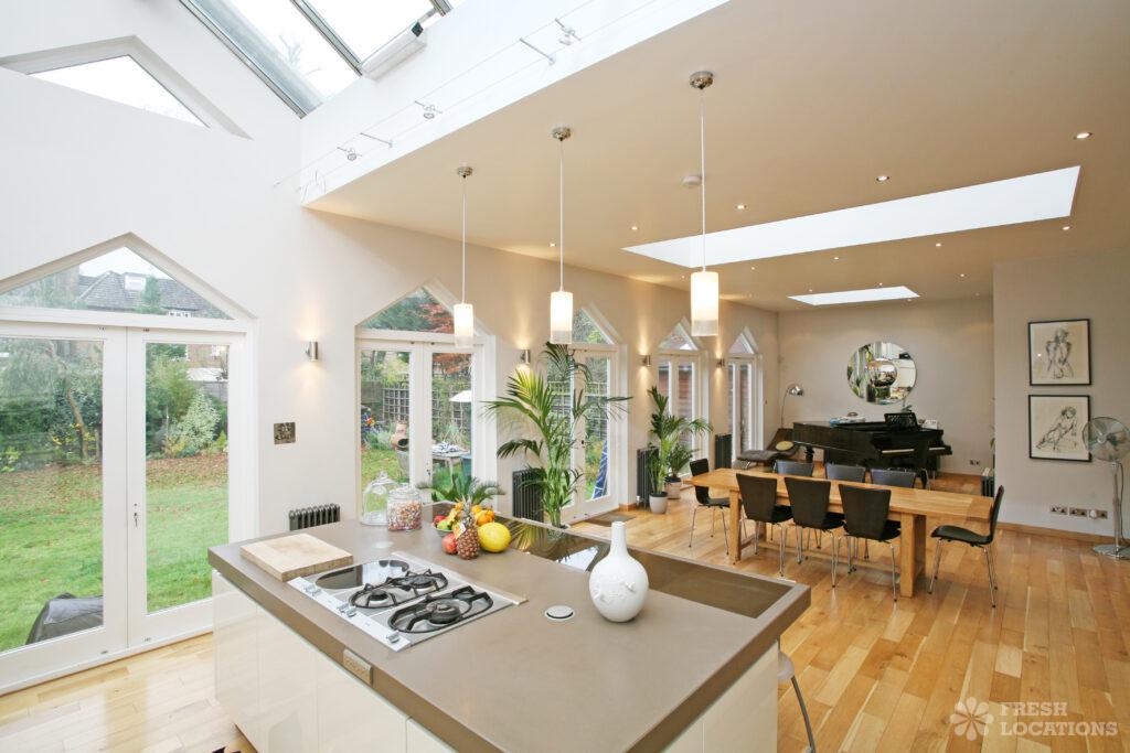 Beautiful detached house shoot location in Kew featuring a modern open plan kitchen/living/dining area with skylights and large windows. Also on site is a shooting …