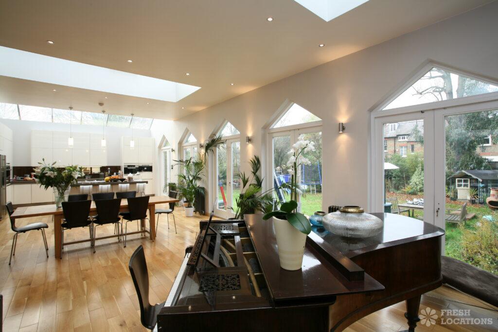 Large, semi-detached filming location house near the river and Kew Gardens in South West London. Open plan ground floor space with a modern extension and …