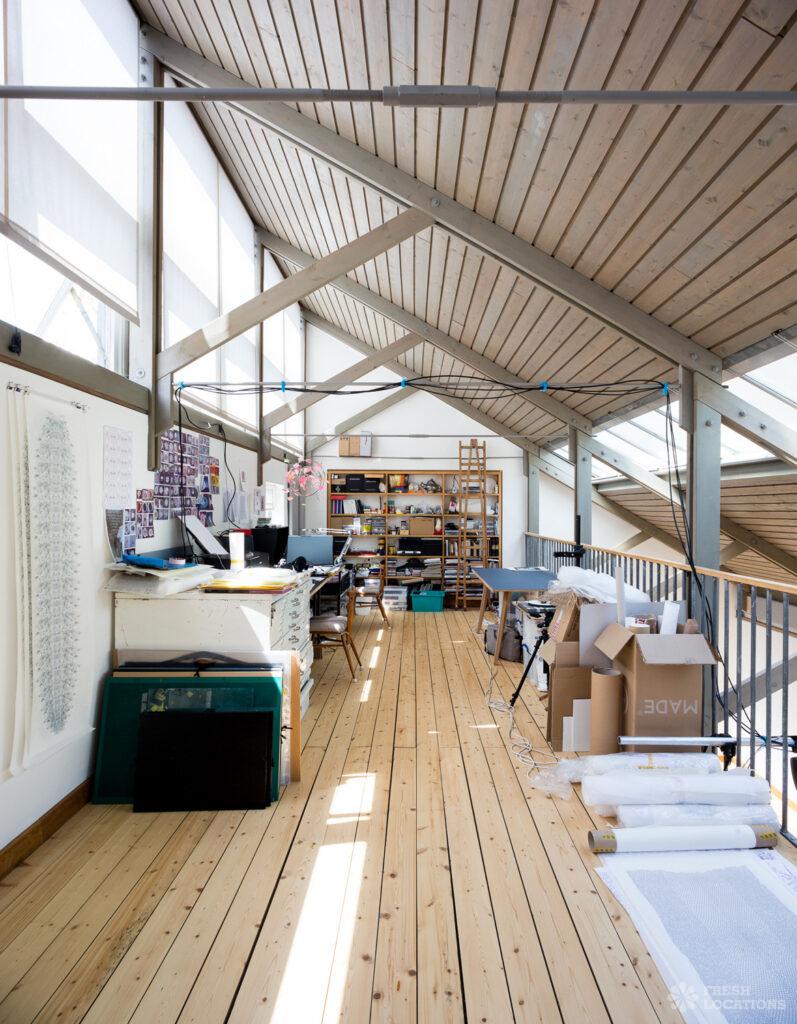 Contemporary artist studio with high ceilings, fantastic light, clean walls. Plenty of props available. London Borough of Islington.