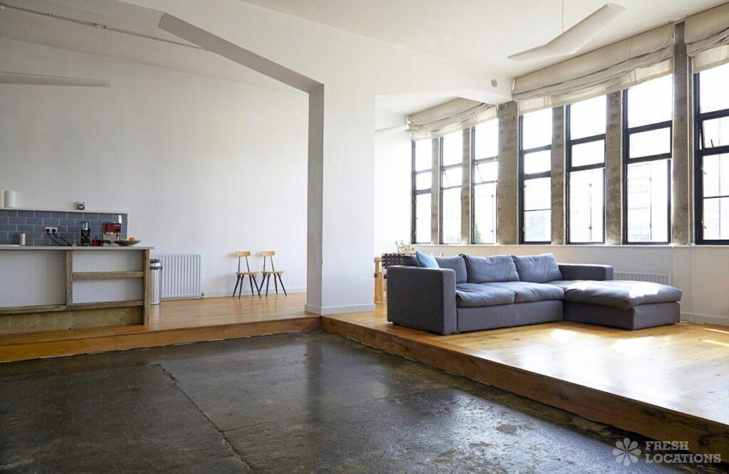 Renovated Warehouse Apartment shoot location in East London. This property has an adaptable layout with easily moveable furniture, and an abundance of natural light. Polished …