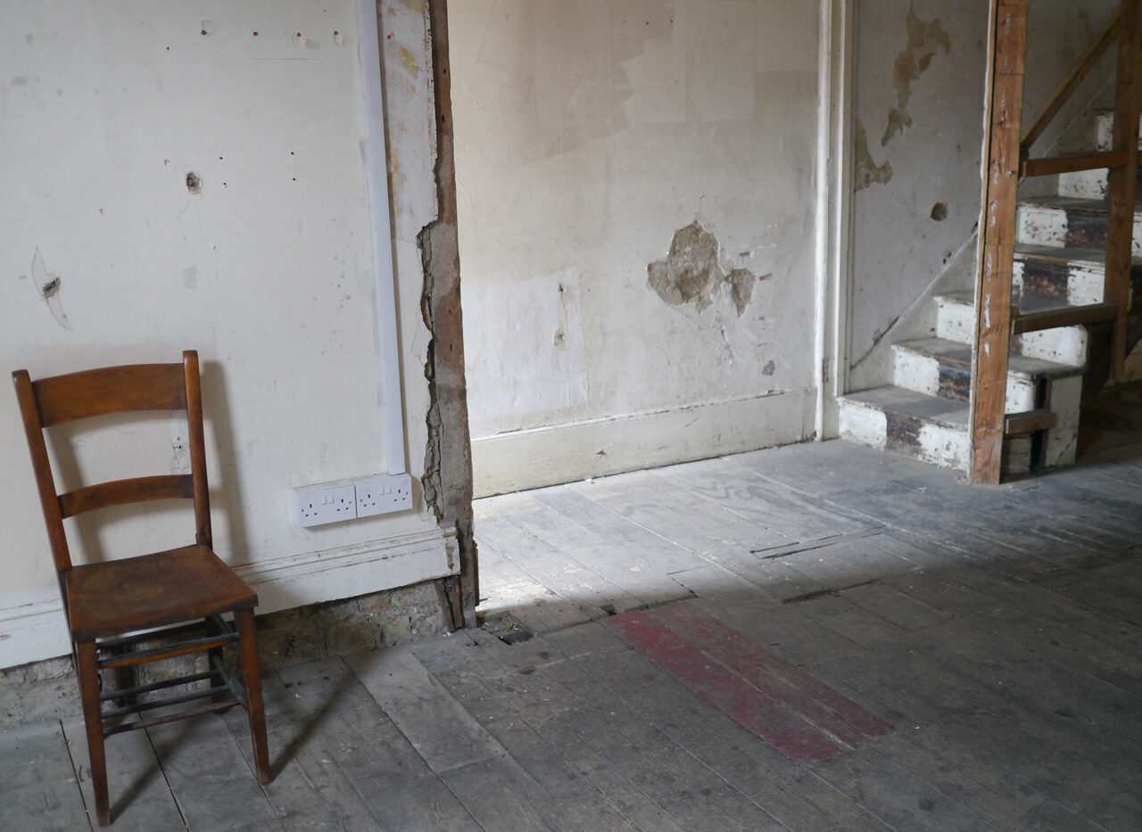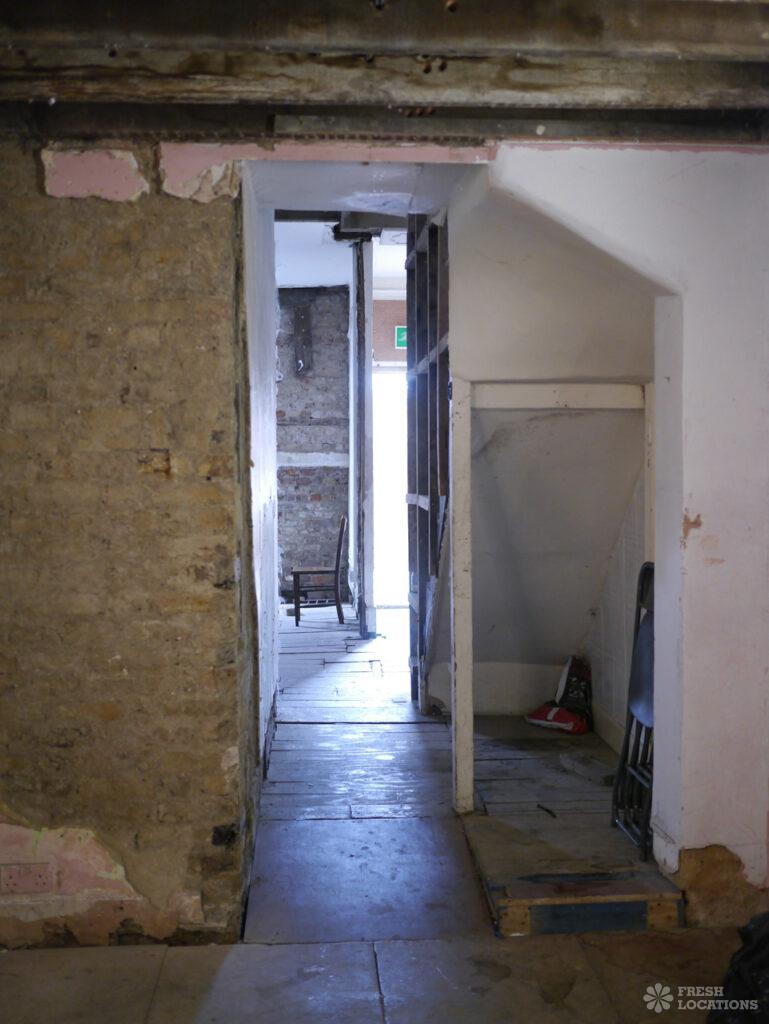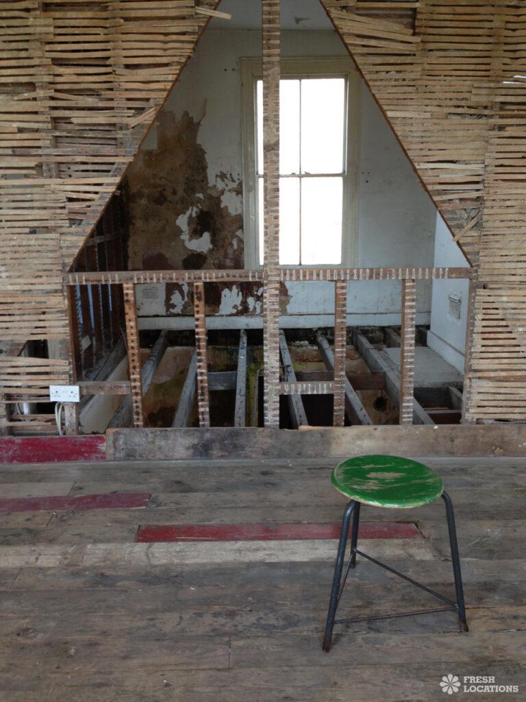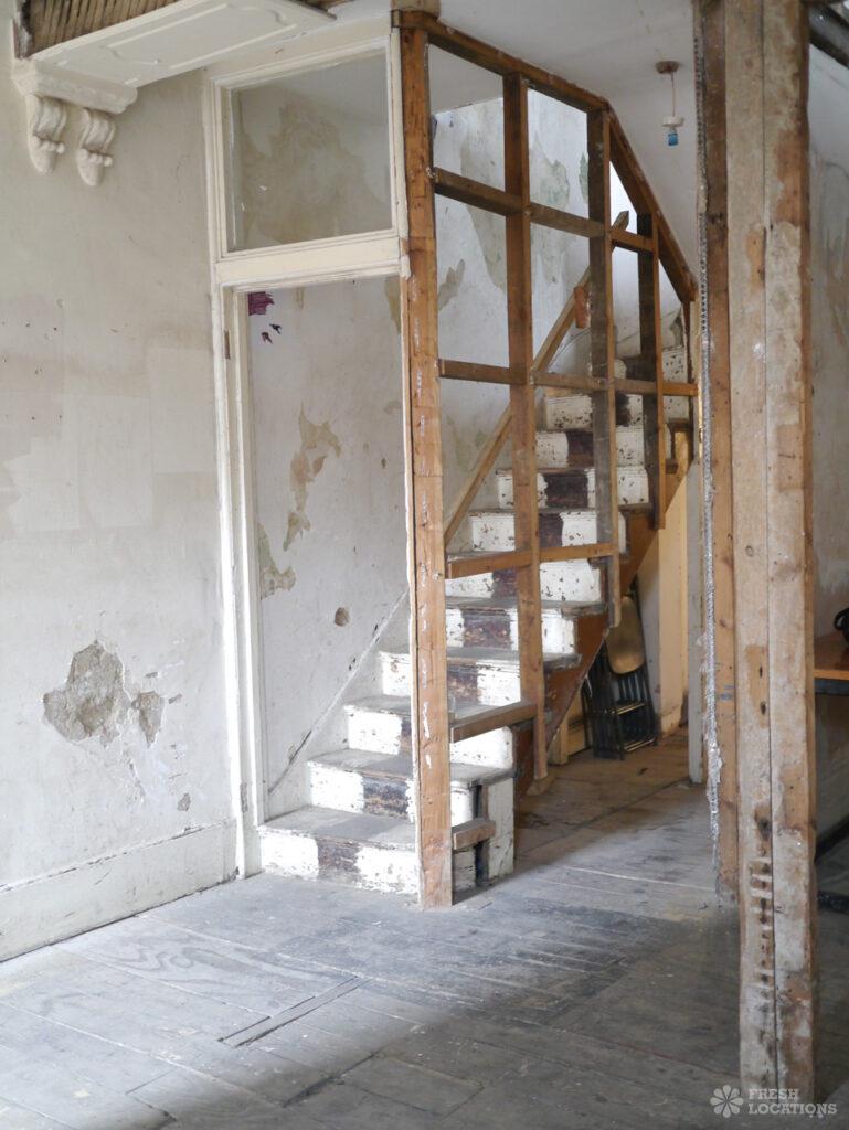 Stripped back, raw location house in Peckham. Exposed beams and textured walls throughout. London Borough of Southwark.